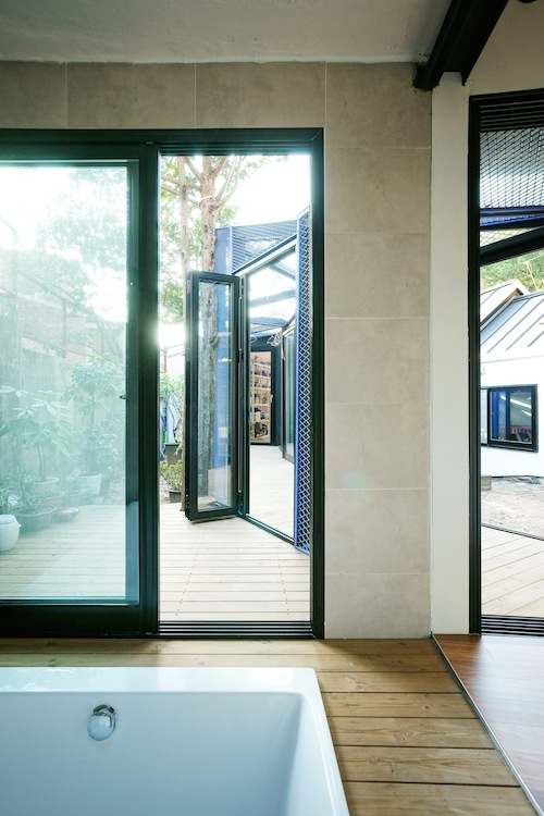 Dựa trên thực tế của sàn nhà đã được hạ thấp xuống sau cải tạo, một bồn tắm cho trẻ con được đặt ngay gần lối vui chơi.