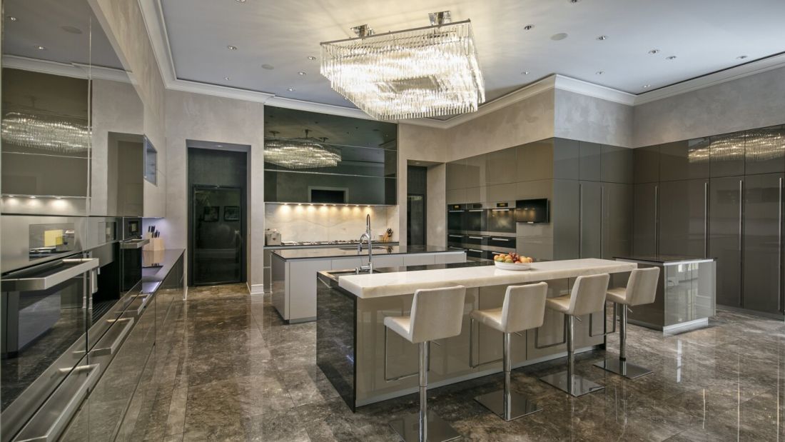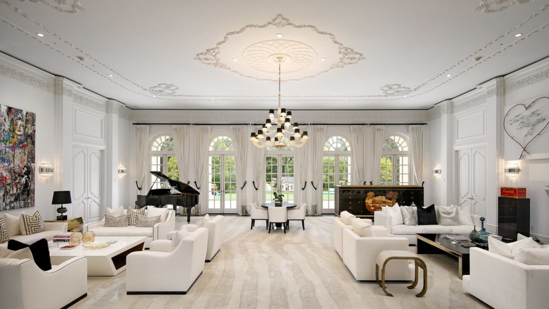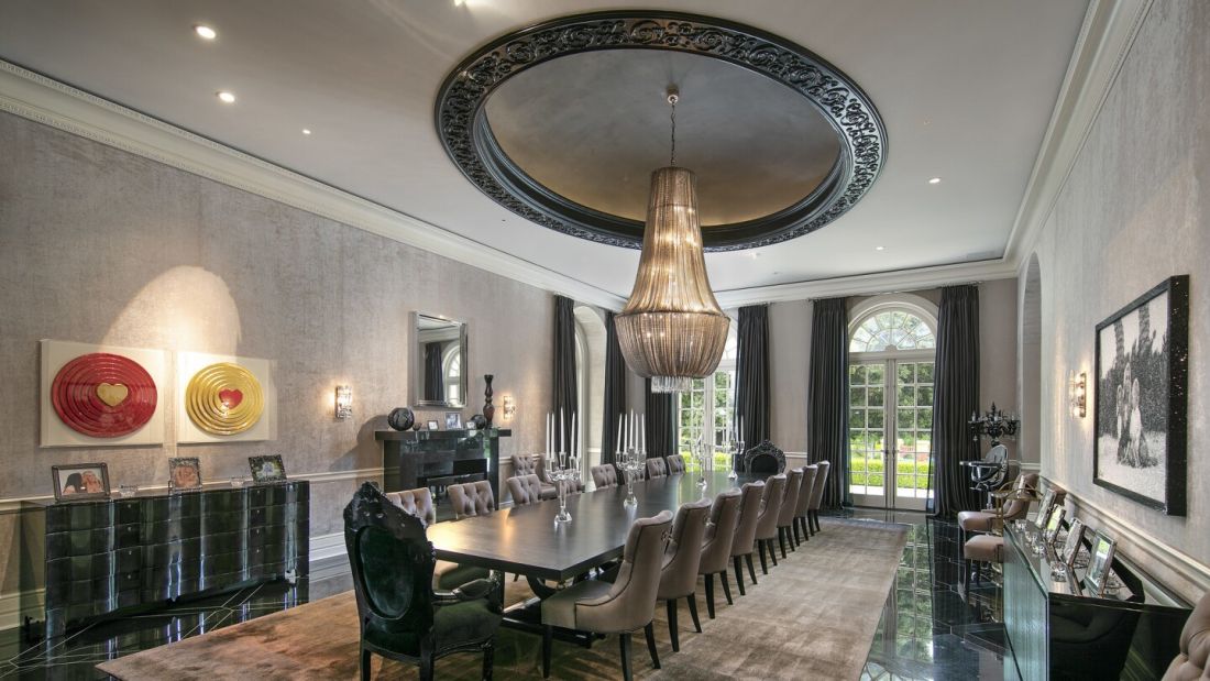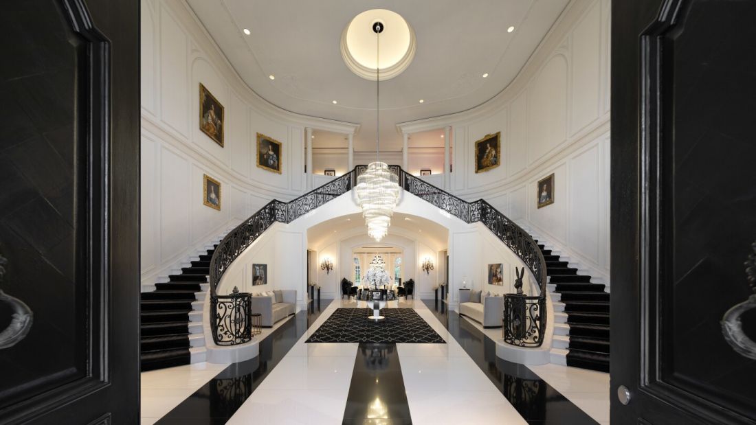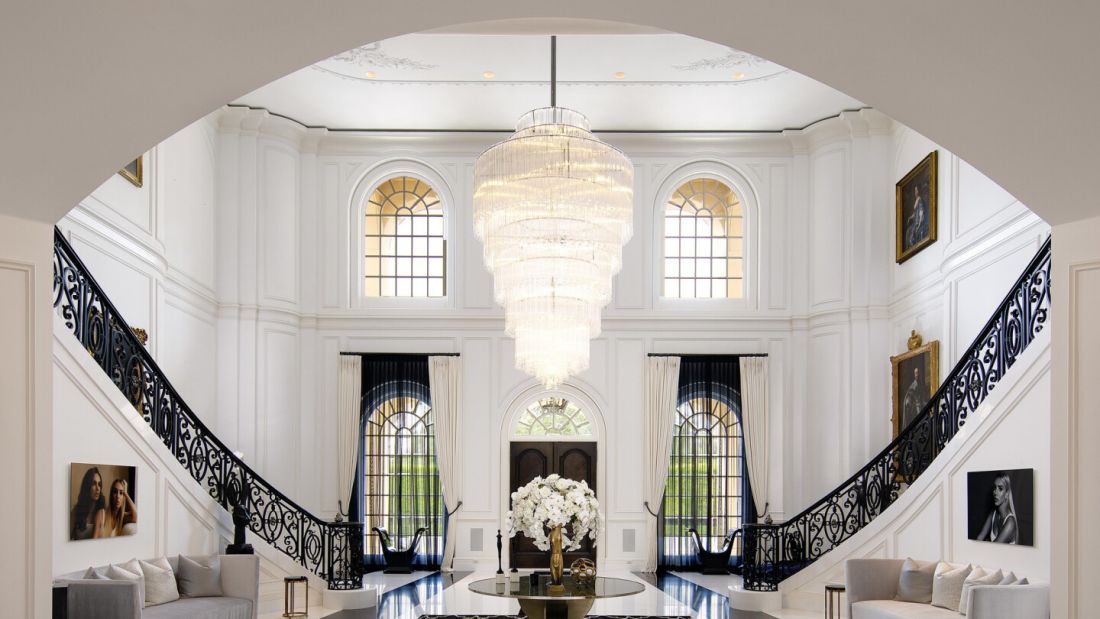 Một số đặc điểm xa hoa khác của ngôi nhà bao gồm tiền sảnh với trần nhà cao hơn 9m, đèn chùm lộng lẫy, cầu thang kiểu hoàng gia với lan can bằng sắt rèn, phòng ăn sang trọng với 22 chỗ, một phòng tắm nắng được bao quanh bởi những cánh cửa kiểu Pháp dẫn đến hồ bơi, một hầm rượu và phòng thử rượu,…