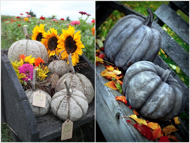Những quả bí đỏ bằng bê tông cho mùa lễ hội halloween.