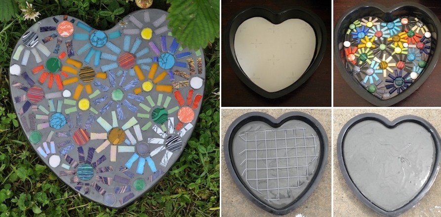 Một chiếc khuôn hình trái tim sẽ khiến bạn tạo được những khối bê tông nhỏ để lát lối đi một cách dễ dàng.