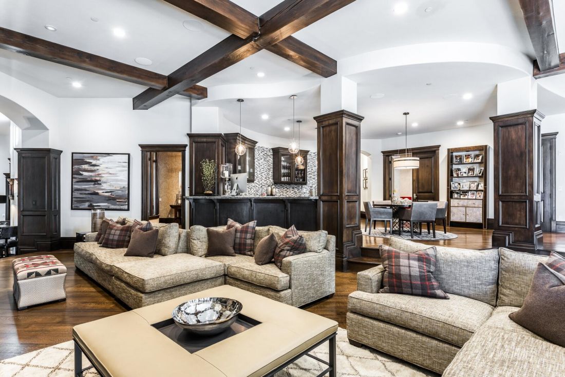 Các tính năng đáng chú ý bao gồm không gian mở phóng khoáng, quầy bar cổ điển, cầu thang xoắn ốc dẫn đến hầm rượu và phòng thử rượu, rạp hát – rạp chiếu phim tại nhà xứng tầm đẳng cấp xa hoa.