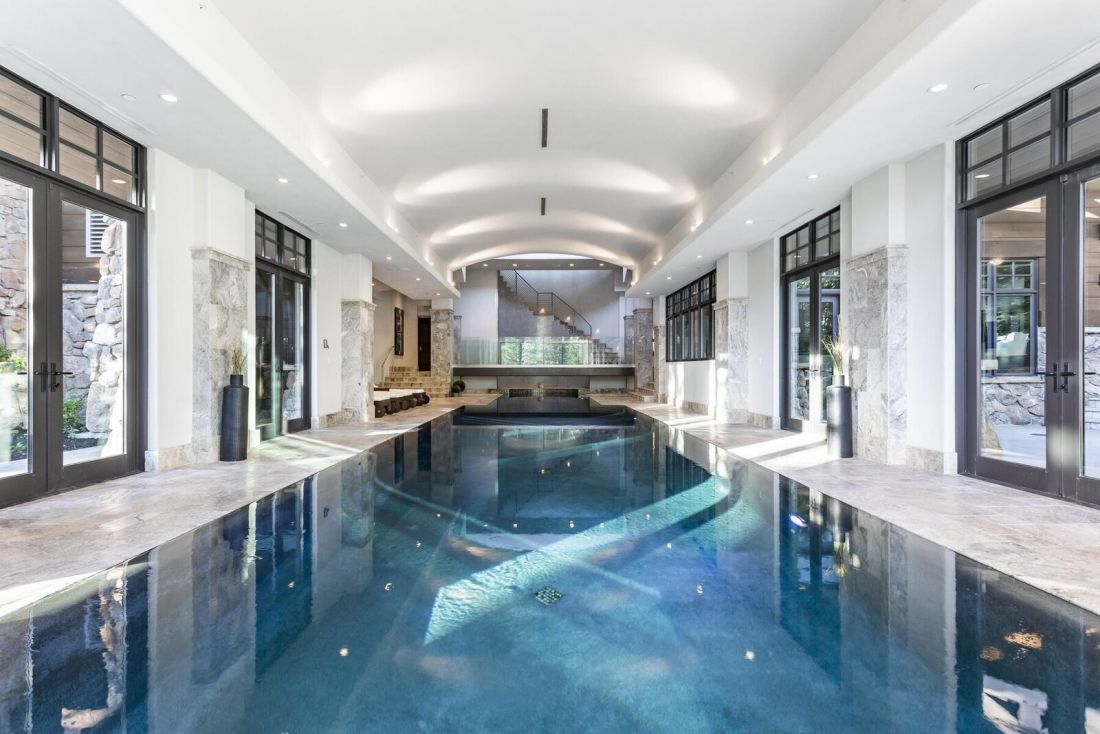 Ngoài ra dinh thự còn có một không gian spa được trang bị đầy đủ và hồ bơi trong nhà dài 25m với các phòng mát-xa, xông hơi nước cũng như phòng tập thể dục.