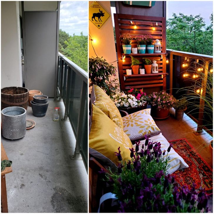 Chỉ cần một ý tưởng thú vị, sắp xếp lại mọi thứ một cách gọn gàng ngay lập tức thì khu vực ban công sẽ trở thành một không gian vô cùng lãng mạn và ngọt ngào.