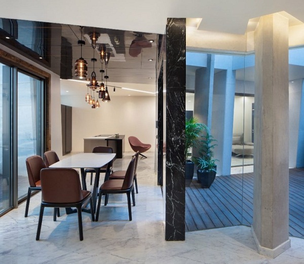 Ngôi nhà được ốp bằng đá cẩm thạch trắng và đen mang lại được cảm giác sang trọng.