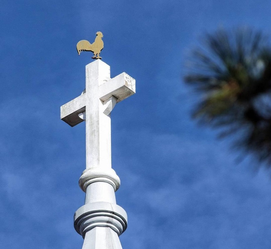 Theo người dân địa phương con gà vừa là biểu tượng của nước Pháp (gà trống xứ Gaulle), còn là biểu tượng của sự sám hối. Con gà được đỡ trên đế bầu tròn và chữ thập chỉ bốn hướng Đông-Tây-Nam-Bắc. Con gà xoay theo hướng gió trên một vòng bạc rất nhẹ nên người dân địa phương thường nhìn con gà quay để đoán chiều nào là có gió, là mưa hay nắng.