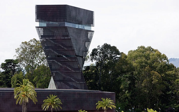 Theo đó, Bảo tàng tưởng niệm MH de Young nằm tại San Francisco, CA, Hoa Kỳ, công trình sở hữu một lớp áo kiến trúc đa giác xoắn, gấp khúc táo bạo.
