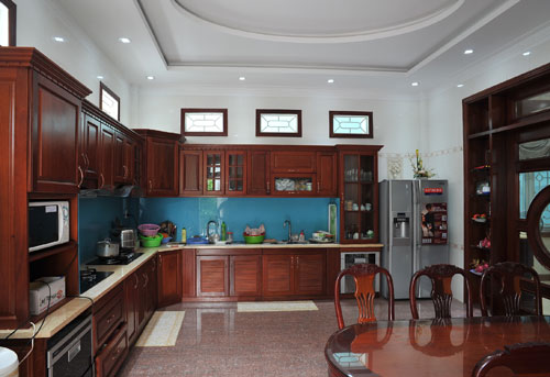 | Gian bếp chủ yếu với nội thất gỗ, sang trọng và sạch sẽ. |