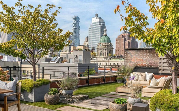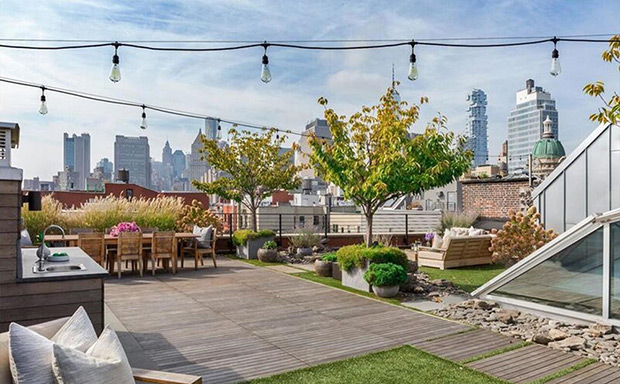 Từ sân thượng có tầm nhìn toàn cảnh ra trung tâm thành phố Manhattan.