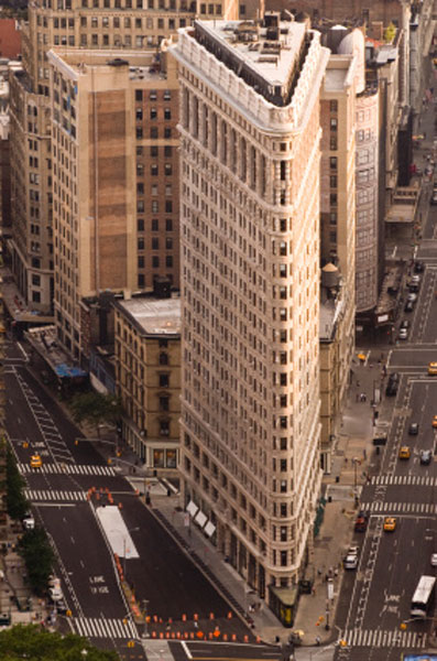 | Tòa nhà Flatiron này là tòa nhà có lịch sử thú vị nhất ở New York. Nó được hoàn thành vào năm 1902 và là một trong những tòa nhà chọc trời đầu tiên được xây dựng. Với hình dạng vô cùng nổi bật là hình tam giác, hẹp ở phía trước và rộng ở phía sau. |