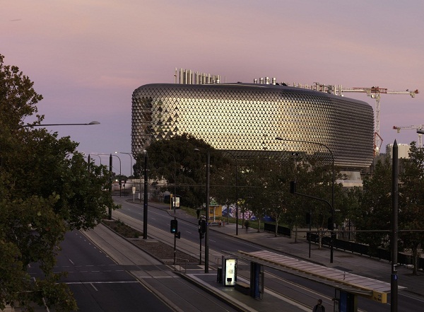 Hình thức xây dựng của SAHMRI mang diện mạo như một khối gai đa giác kéo dài, nằm trong vành đai xanh của công viên thành phố Adelaide.