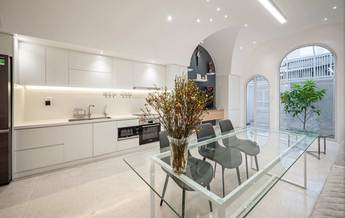 Không hào nhoáng hay phô trương, biệt thự hiện hữu như một ốc đảo tĩnh lặng theo phong cách Địa Trung Hải được tái hiện bằng tư duy kiến trúc đương đại tại TP.HCM.