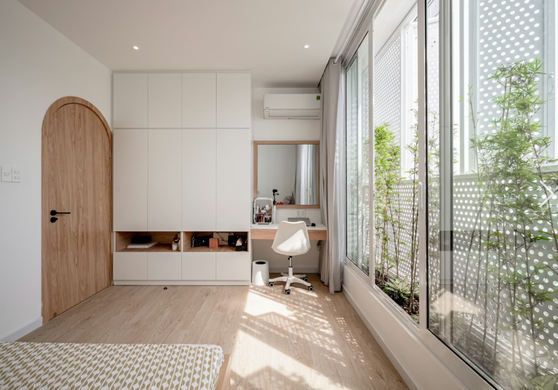 Tầng 3 gồm 3 phòng ngủ được tính toán kỹ lưỡng. Trong kỷ nguyên của xu hướng làm việc từ xa, việc đảm bảo mọi căn phòng đều có ánh sáng tự nhiên và view nhìn xanh mát không còn là sở thích, mà là một tiêu chí bền vững.
