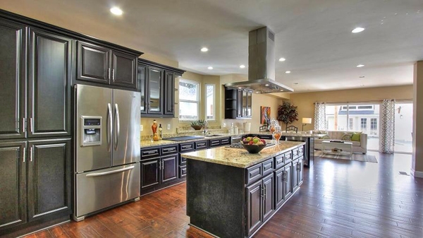 Phòng bếp rộng và sang trọng nhờ cách bài trí hệ thống tủ và đèn tuyệt đẹp