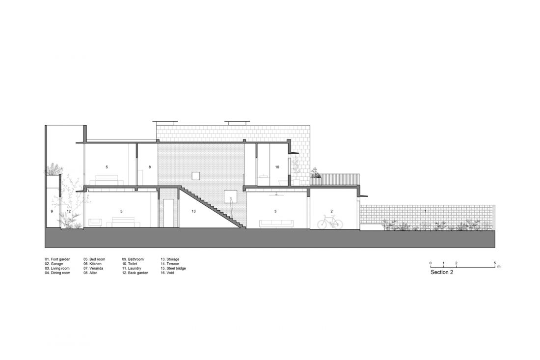 Bản vẽ mặt cắt ngôi nhà 2 giếng trời ngoài xám trong đỏ tại Đồng Nai.