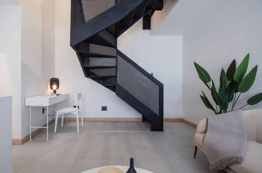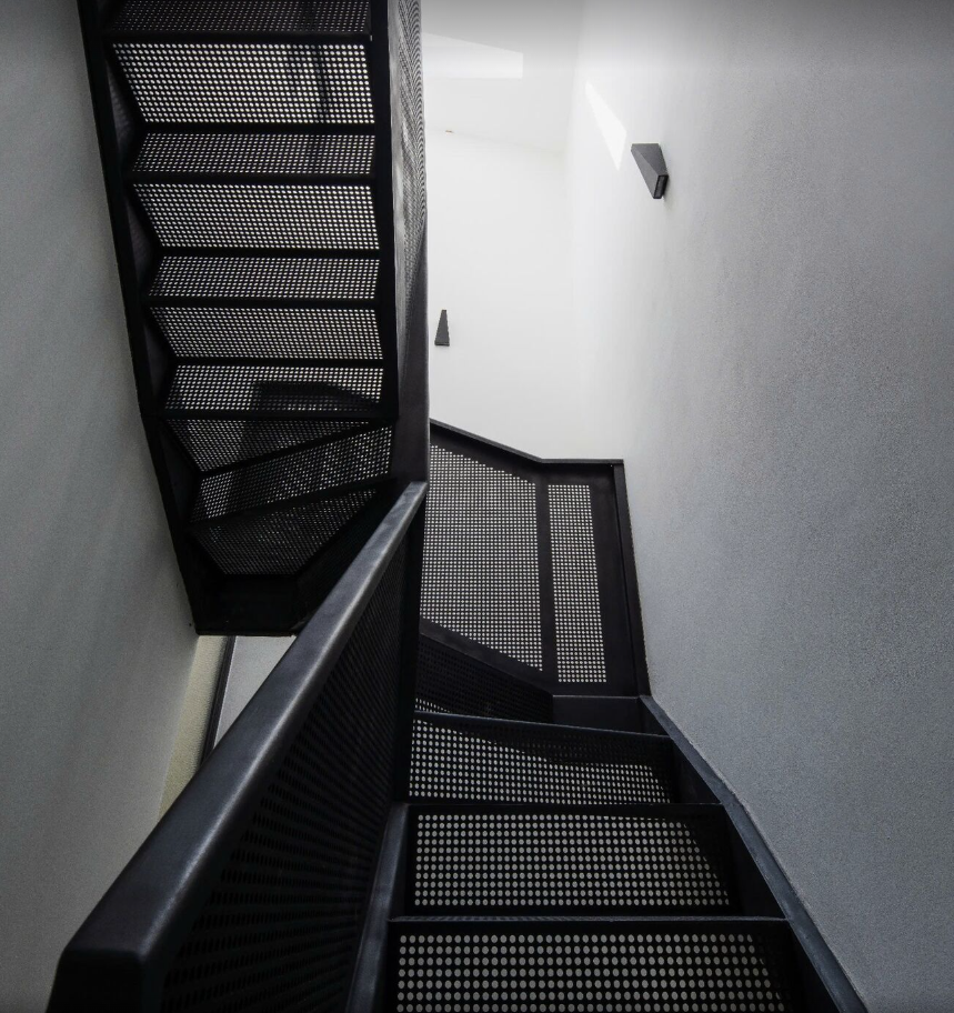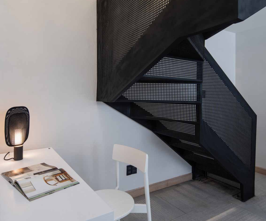 Đặc biệt, cầu thang lưới thoáng đãng không chỉ đẹp mắt mà còn giúp ánh sáng len lỏi xuống từng góc nhỏ, mang lại cảm giác rộng rãi như thể bạn đang ở một ngôi nhà lớn hơn nhiều.