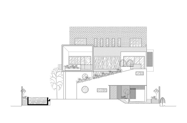 Phòng chiếu phim được lắp đặt các thiết bị công nghệ cao, với việc cách âm tối tân mang đến những trải nghiệm điện ảnh đích thực. Bên cạnh đó, ngôi nhà còn sử dụng các yếu tố như hồ bơi và hồ cá Koi được phân chia bởi khoảng xanh cũng là một ý tưởng để hài hòa quan điểm khác biệt về nội thất giữa vợ và chồng.