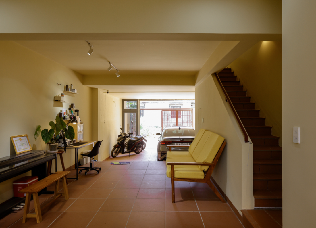 Tầng trệt của ngôi nhà được thiết kế để dễ dàng di chuyển đồ đạc khi cần thiết, giúp gia đình nhanh chóng ứng phó với những đợt lũ.