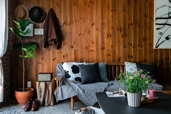 Phòng khách khá rộng rãi, trưng bày nội thất bằng gỗ tự nhiên, hài hòa với năng lượng xanh của những cây nhỏ được trồng bởi mỗi thành viên trong gia đình. Với mong muốn không chỉ xây dựng một ngôi nhà để sống, mà còn là nơi xây dựng tình yêu, tình bạn thân thiết và lưu giữ những khoảnh khắc đẹp cùng nhau.