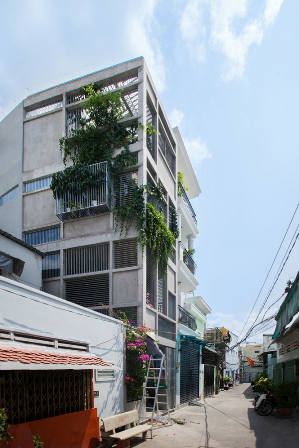 CafeLand - Công trình giống như nhiều ngôi nhà ống khác ở Sài Gòn. Ngôi nhà này nằm trên một mảnh đất hẹp 4m x 12m trong khu dân cư đông đúc ở Q. Bình Thạnh, Thành phố Hồ Chí Minh.