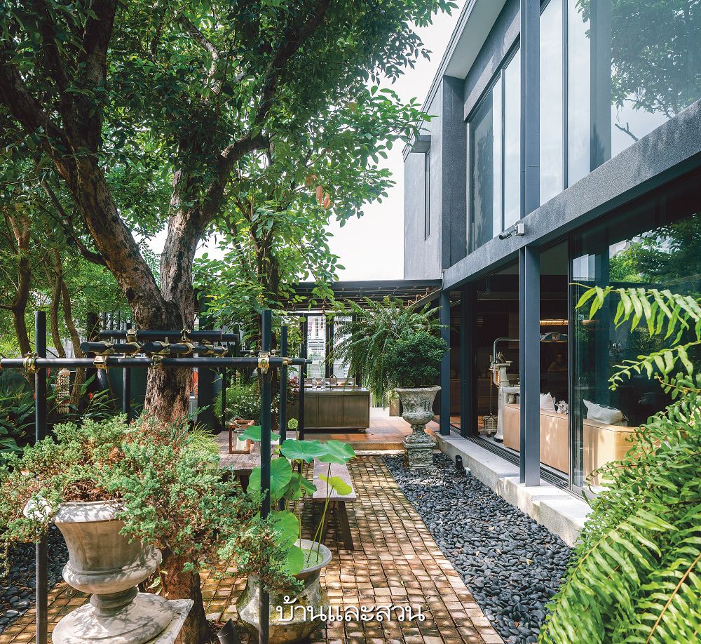 Tọa giữa không gian là khuôn viên trồng cây xanh, đồng thời là nơi mang ánh sáng tràn ngập căn nhà.
