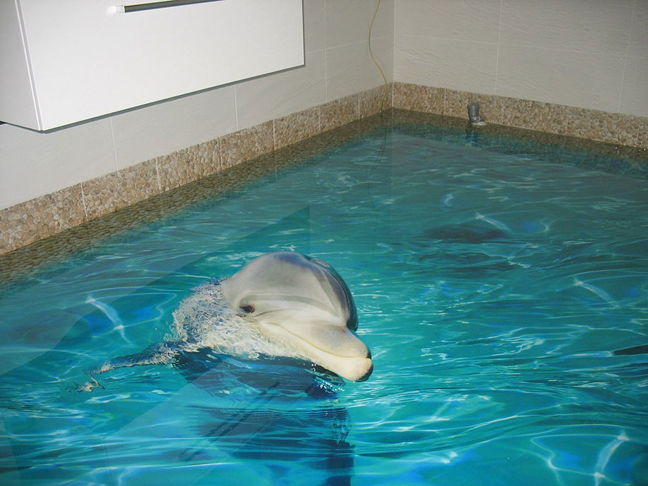 Hay chú cá heo đáng yêu cũng mang lại cho ngôi nhà cảm giác mát mẻ thư thái vào những ngày hè oi bức.