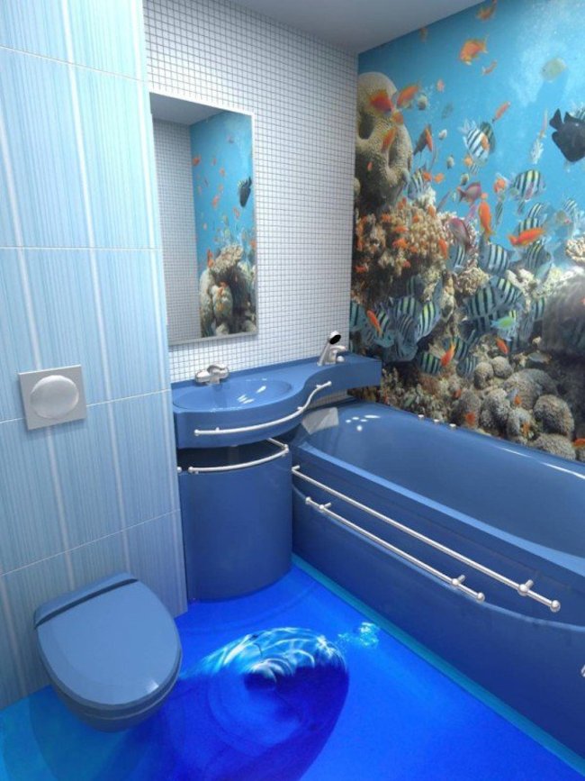 Hoặc sàn nhà với các loại cá màu sắc.