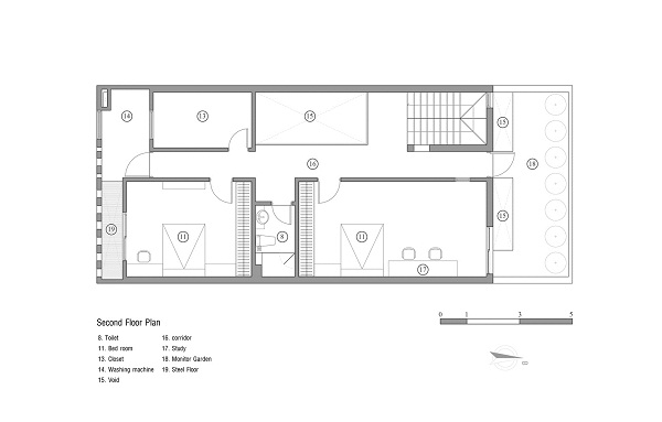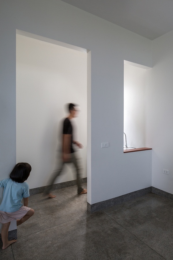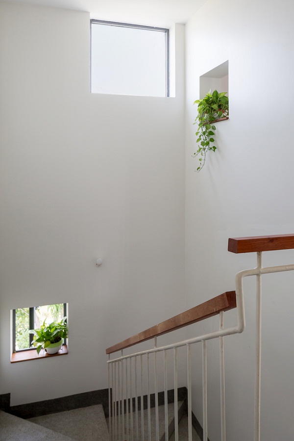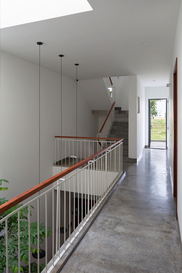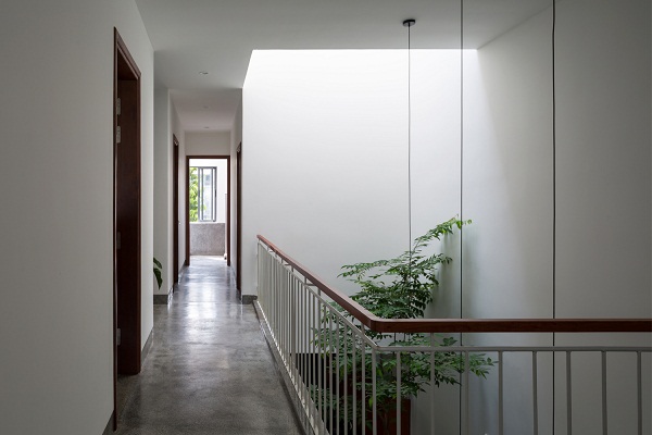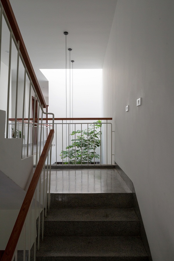 Kiến trúc sư đã mang ánh sáng vào nhà bằng cách tạo ra giếng trời ngay trung tâm nhà và xuyên qua các tầng, giải pháp này kết nối các không gian bên trong và bên ngoài.