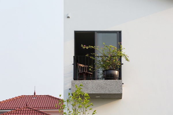 Ánh sáng được phân phối đồng đều giữa khu vực công cộng và khu vực riêng tư. Bầu trời trong vắt có thể được nhìn thấy qua trên sân thượng.
