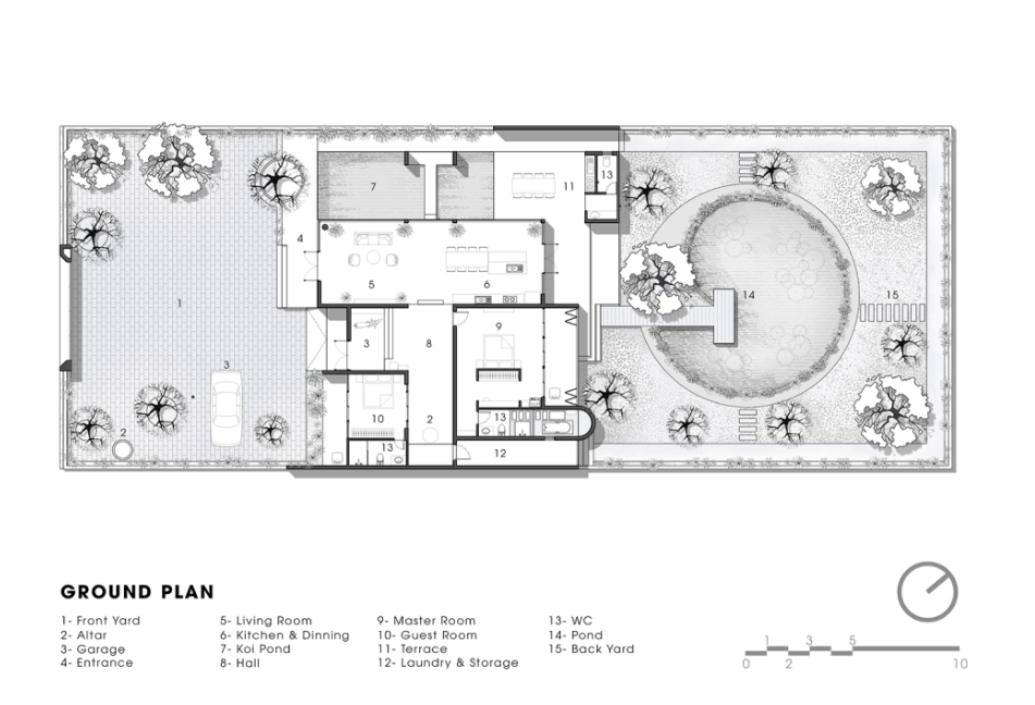 Mảnh đất có diện tích đất rộng trong đó diện tích xây dựng là 250m2 là không gian sinh hoạt chính bao quanh khoảng sân trước và sân sau. Kiến trúc sư đã cố gắng đưa ra giải pháp thiết kế nhà sao cho gia chủ cảm giác luôn thoải mái và an tâm mỗi khi trở về nhà.