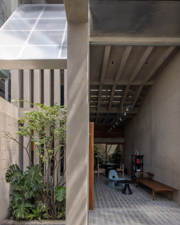 Sự hy sinh diện tích này tạo nên một khoảnh khắc nhẹ nhõm cho con hẻm cụt. Hệ hàng rào bằng thép không gỉ vào những ngày có sự kiện cộng đồng có thể mở toang hoàn toàn, biến khoảng sân và con hẻm thành một không gian giao lưu văn hóa đầy ấm áp.
