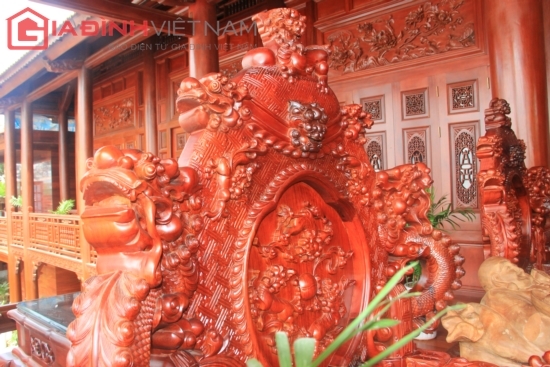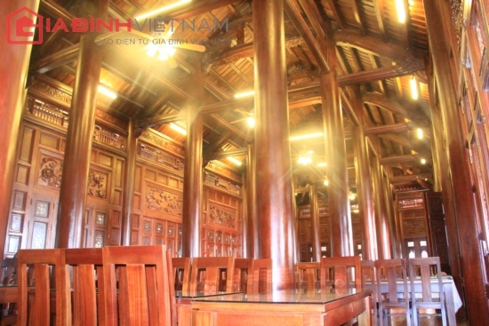 Phía trong ngôi nhà sàn sử dụng hơn 16 cột có đường kính 45 cm, chiều dài từ 9m đến 11m. Toàn bộ nột thất và cột kèo, tường...đều bằng gỗ lim.