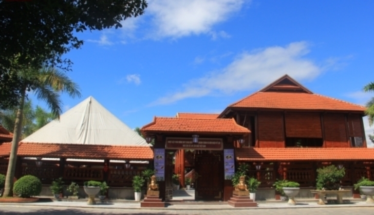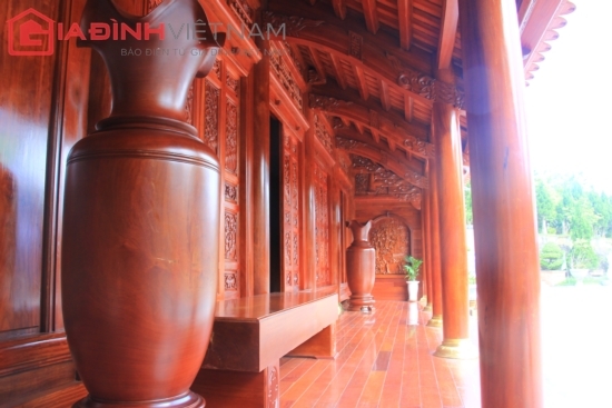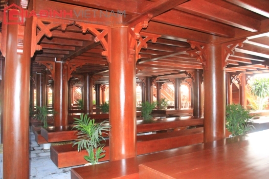 Nhà sàn gỗ lim lớn nhất Việt Nam nhìn từ phía ngoài.