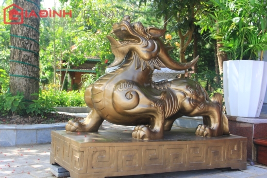 Tỳ hưu bằng đồng đặc nguyên chất nằm trước cửa khu vào nhà sàn.
