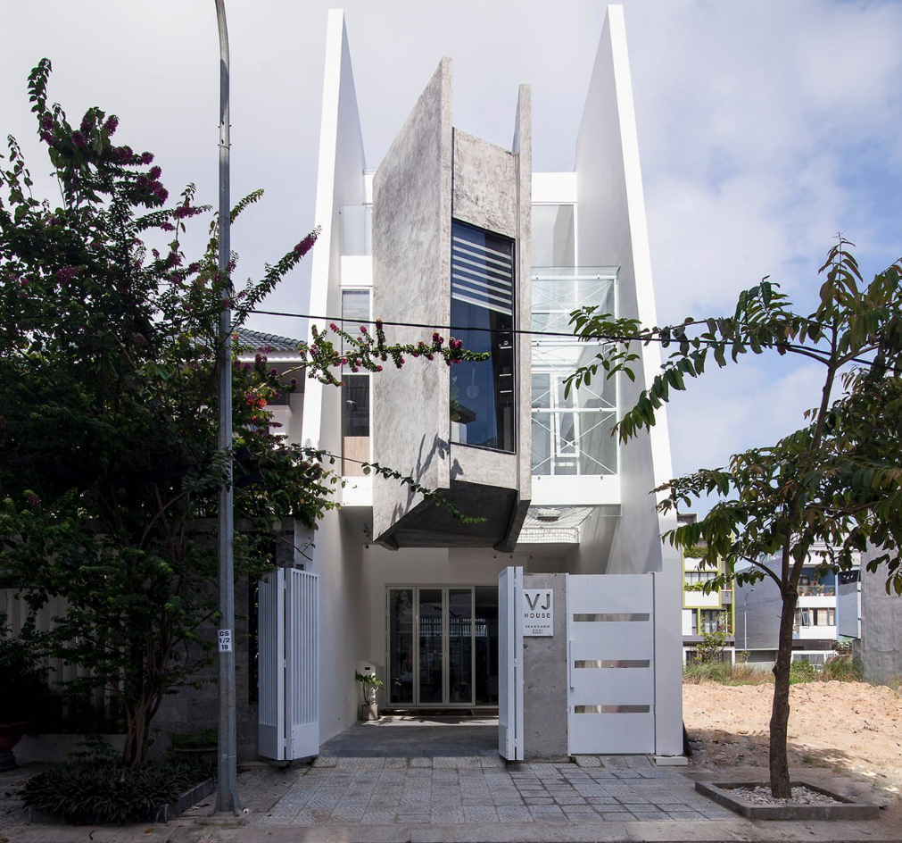 Ngay từ khoảnh khắc đầu tiên, ngôi nhà trên đường Trần Đăng, Đà Nẵng, đã khiến bạn phải ngoái nhìn. Ngôi nhà được xây dựng trên diện tích 100m² với 3 tầng, phục vụ cho một gia đình ba thế hệ. Điều làm bạn ấn tượng ngay lập tức chính là những đường xiên mạnh mẽ trên mặt tiền.