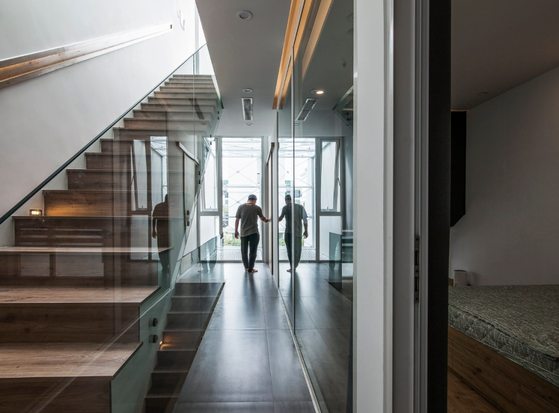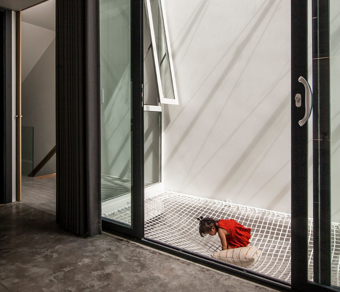 Bên trong ngôi nhà nhỏ có khoảng thông tầng hình kim tự tháp tại Huế