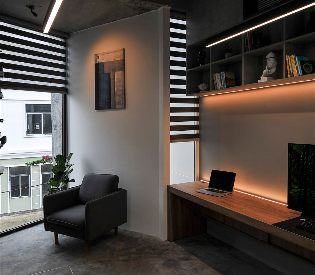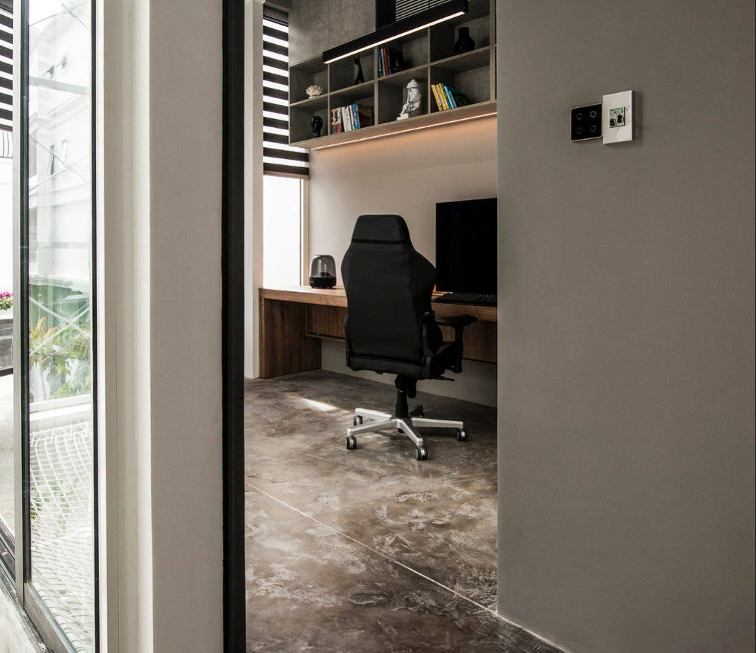 Điểm sáng nhất của ngôi nhà chính là studio làm việc trên tầng 2 – nơi chủ nhân dành phần lớn thời gian cho công việc IT của mình.