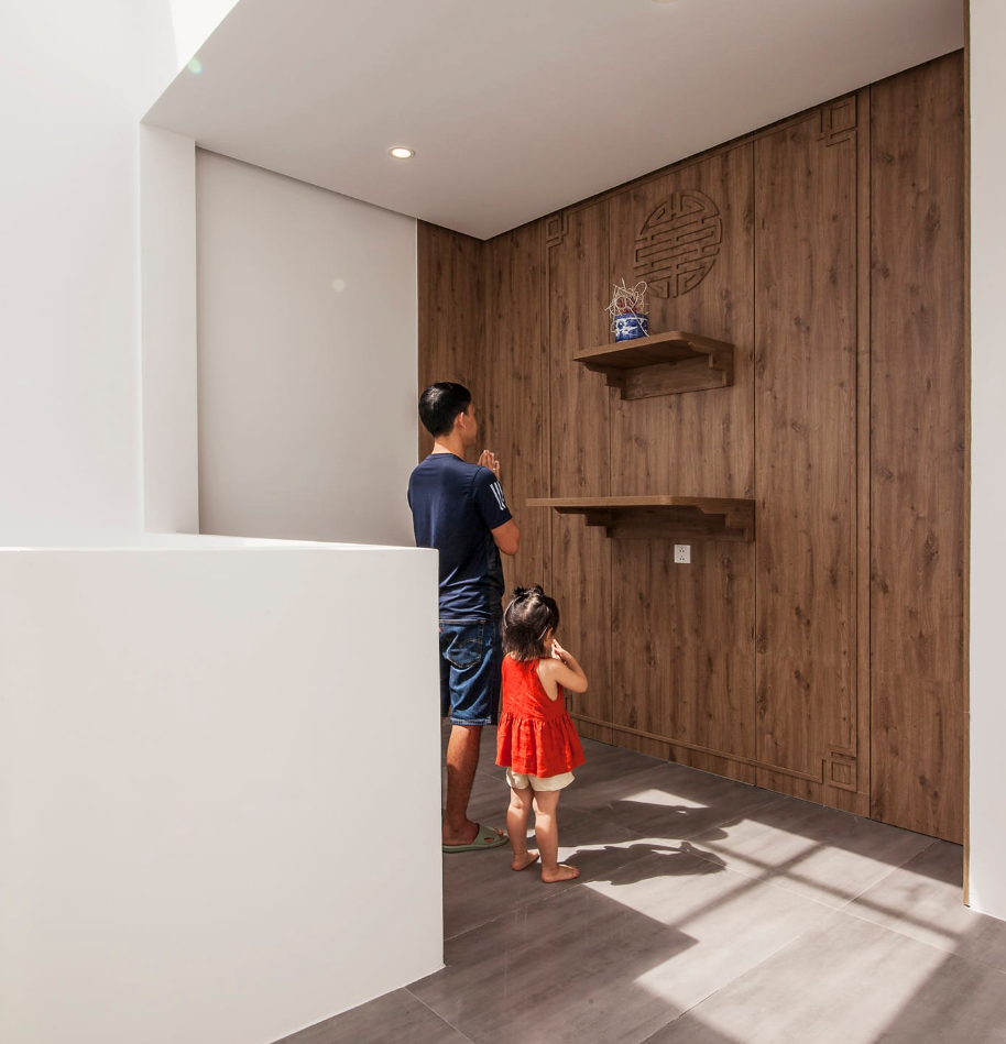Phòng thờ được thiết kế đơn giản tại tầng 3