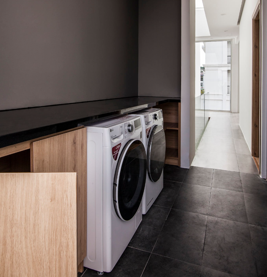Cuối hành lang tầng 3 là không gian dành cho giặt quần áo