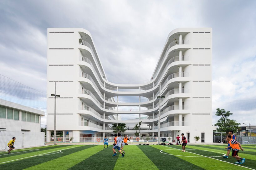 Mảnh đất được quy hoạch là một quần thể giáo dục bao gồm nhiều cụm công trình tương ứng với các cấp học khác nhau, liên kết với nhau từ mầm non đến trung học. Công trình có cấu trúc giống như dải băng dài bên trong tràn ngập ánh nắng mặt trời tự nhiên.