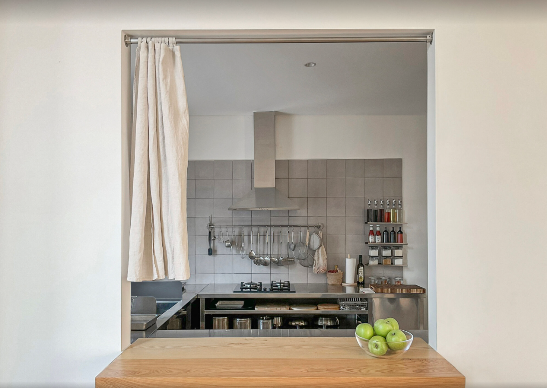 Cạnh phòng khách là phòng bếp, nơi các thành viên trong gia đình cùng nhau chuẩn bị và thưởng thức những bữa ăn.