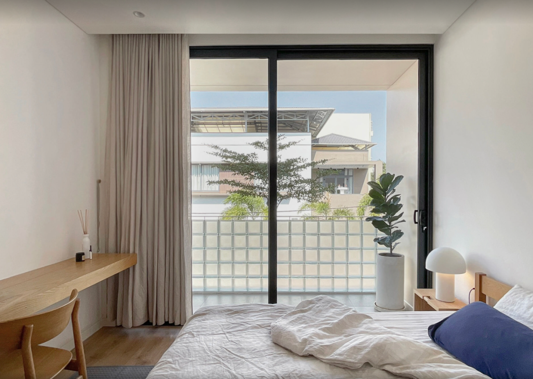 Mỗi phòng ngủ mang phong cách tối giản với tông màu ấm từ gỗ và sơn tường trắng. Dù đơn giản, nhưng cách bài trí thông minh đã tạo nên cảm giác ấm áp, riêng tư, và đầy đủ tiện nghi.
