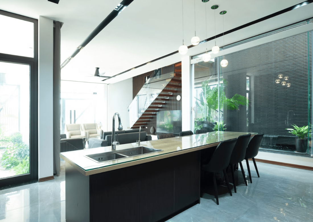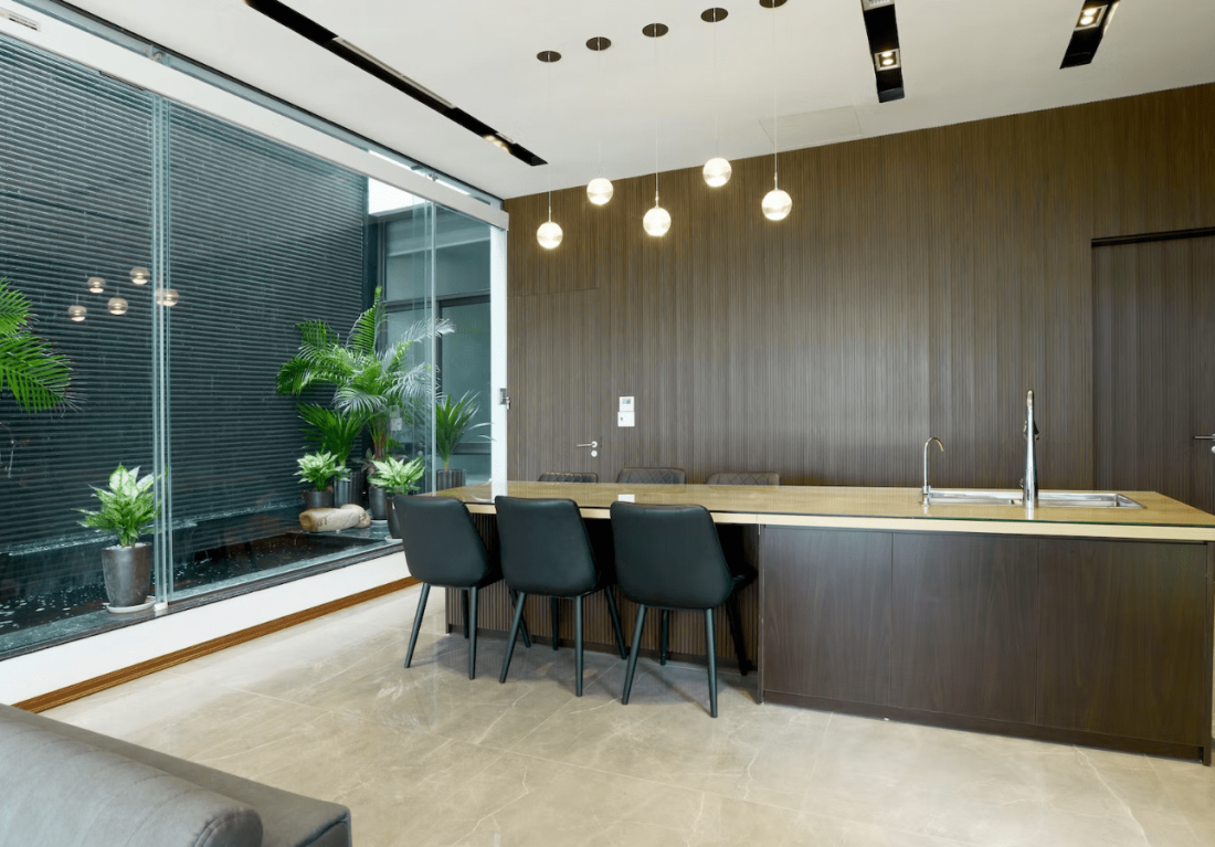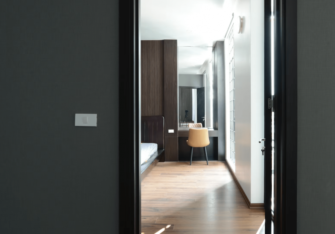 Một không gian sống hiện đại được thiết kế với tinh thần tối giản và sự nhất quán tuyệt đối về màu sắc và vật liệu. Đặc biệt, hãy chiêm ngưỡng cách ánh sáng tự nhiên được kiểm soát qua cửa kính lớn và rèm mềm mại, cùng những khu vực cá nhân hóa đầy c...