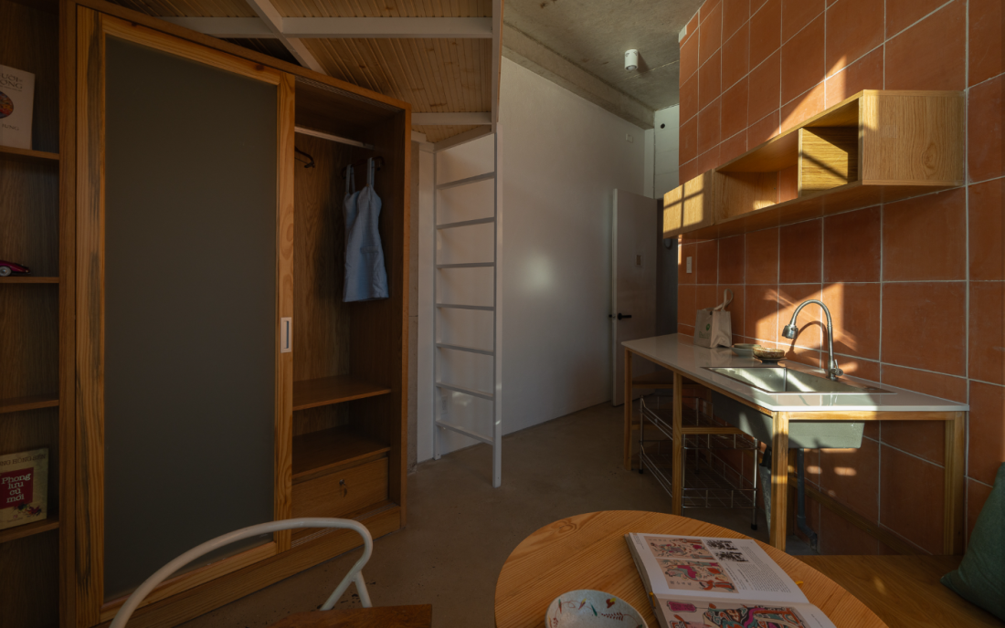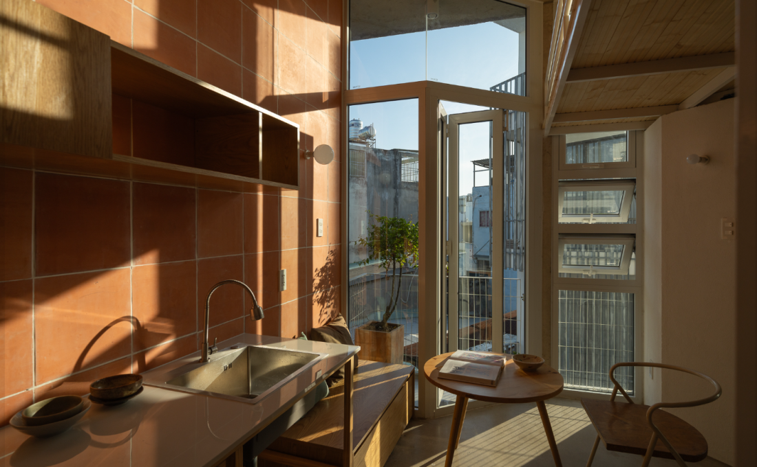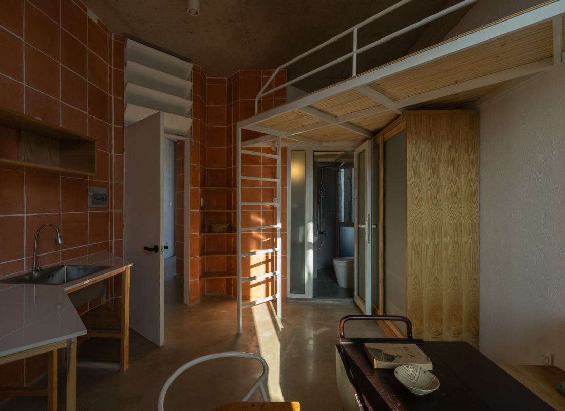 Tầng 3, 4, 5: là căn hộ cho thuê thiết kế bao gồm bếp, phòng tắm và giường tầng tích hộp trong một không gian chung. Phía trước ban công nhỏ, phía sau gắn liền khoảng vườn thẳng và cầu thang bộ.