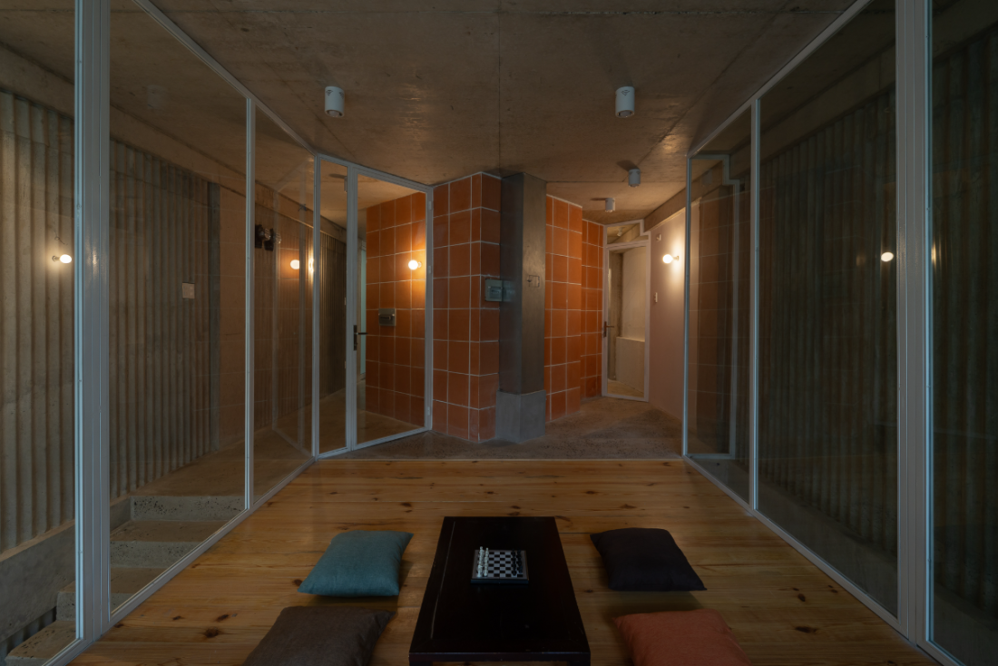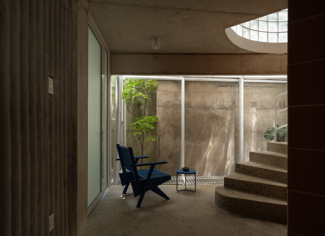 Ánh sáng tự nhiên được tận dụng tối đa, len lỏi vào từng ngóc ngách. Các vật liệu thô mộc như bê tông trần, thép và kính được sử dụng để tạo nên một không gian tối giản, hiện đại nhưng vẫn gần gũi và ấm áp.
