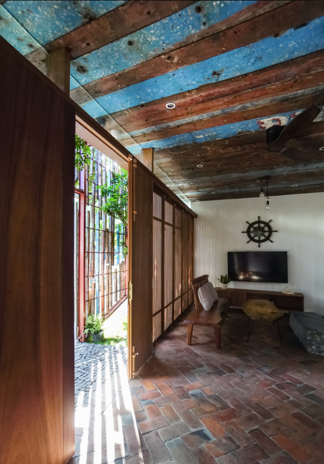 Ngoài gỗ, sự kết hợp ăn ý giữa gạch và bê tông không chỉ tạo nét đẹp truyền thống mà còn phù hợp với khí hậu của Đà Nẵng.