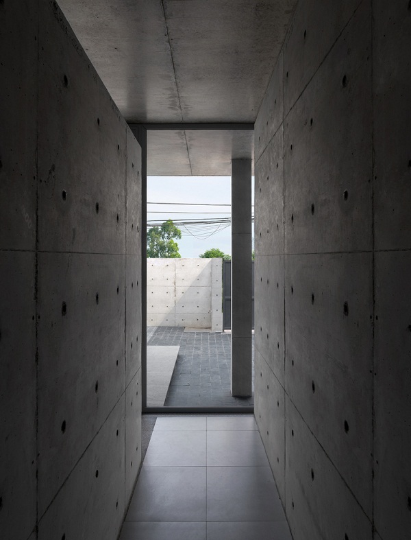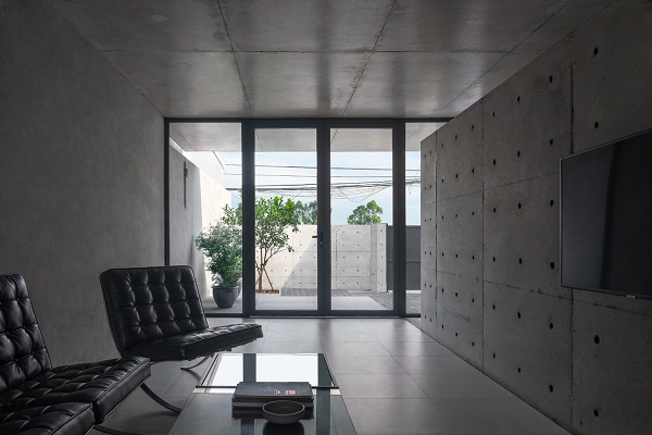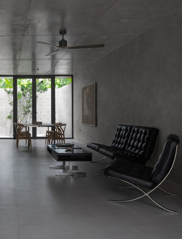 Ngoài ra bức tường bê tông cao khoảng 2.2m được sử dụng làm giải pháp ngăn cách không gian sinh hoạt chung và không gian riêng tư của các thành viên trong gia đình.
