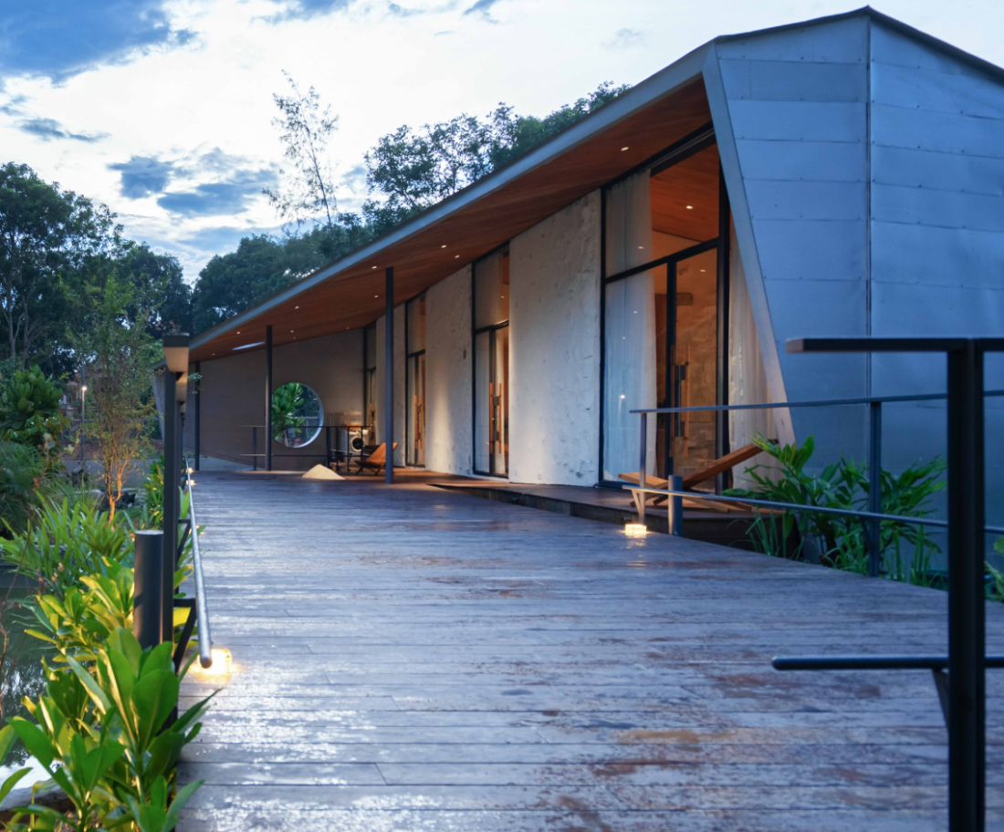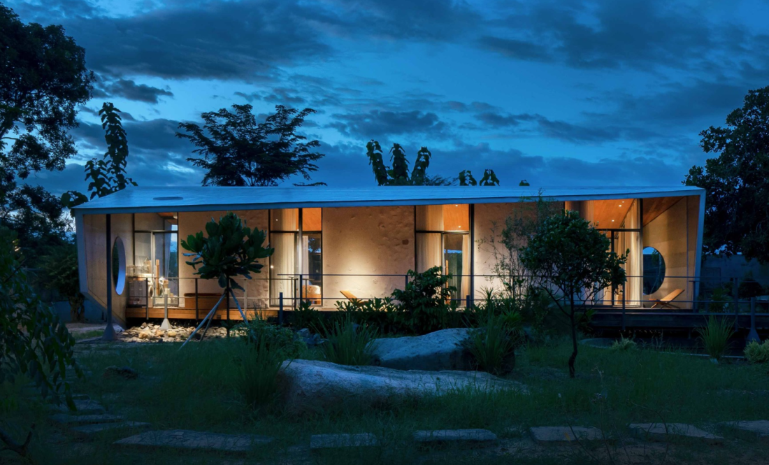 Ẩn mình trong một ngôi làng yên bình bên rừng Nam Cát Tiên, tỉnh Đồng Nai là ngôi nhà nằm trên mảnh đất 1.000m² với 26 cây điều lâu năm, hòa quyện giữa kiến trúc và cây cỏ.