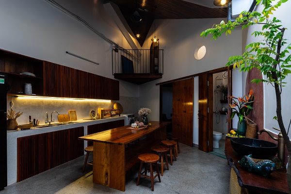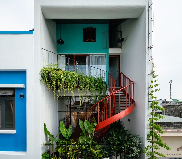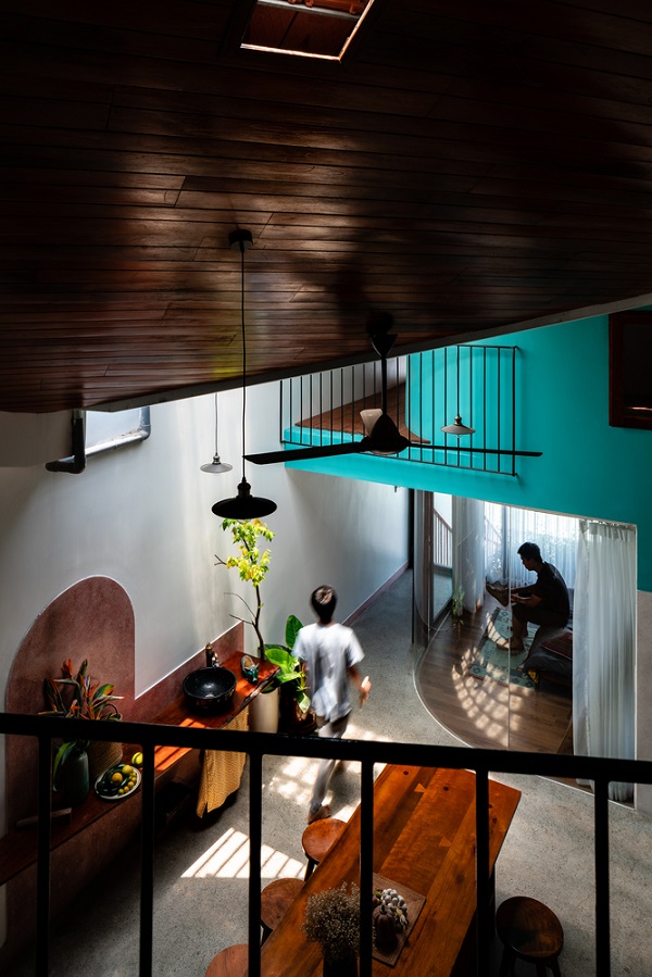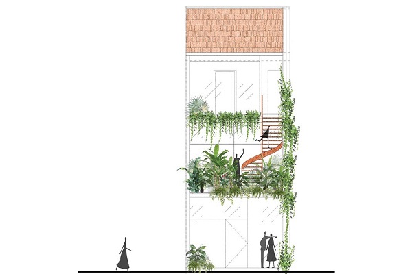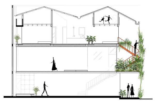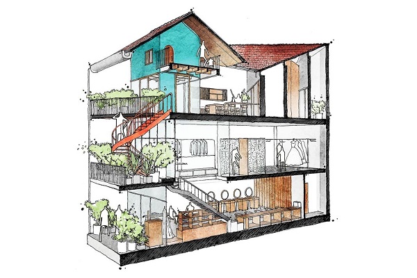 Lấy cảm hứng từ lối sống, phong tục của ngôi nhà ba gian ở miền Trung Việt Nam, các kiến trúc sư đã đề xuất giải pháp thiết kế ngôi nhà đa tầng, đa chức năng, các tầng xếp chồng đan xen lên nhau theo chiều dọc.