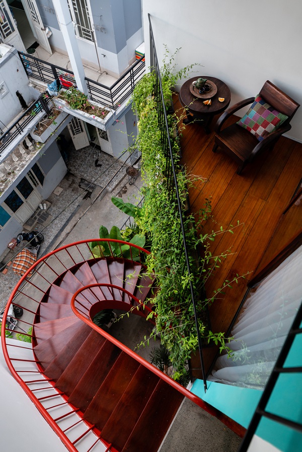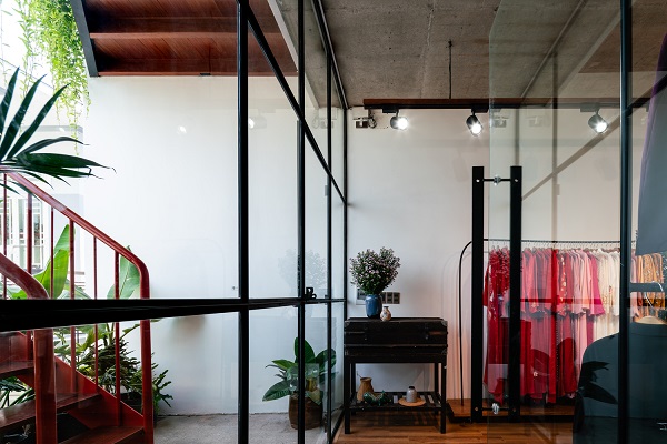 Điểm nổi bật trong sự phân chia không gian kinh doanh và không gian chức năng ở chính là cầu thang sắt lộ thiên, là sự chuyển tiếp giữa nơi làm việc và nghỉ ngơi nhưng vẫn đảm bảo sự riêng tư.