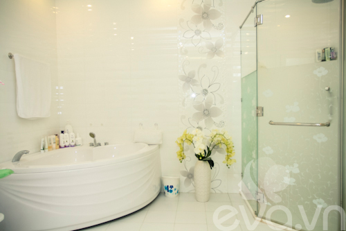 Phòng tắm rộng rãi có cả bồn tắm và nơi tắm đứng.